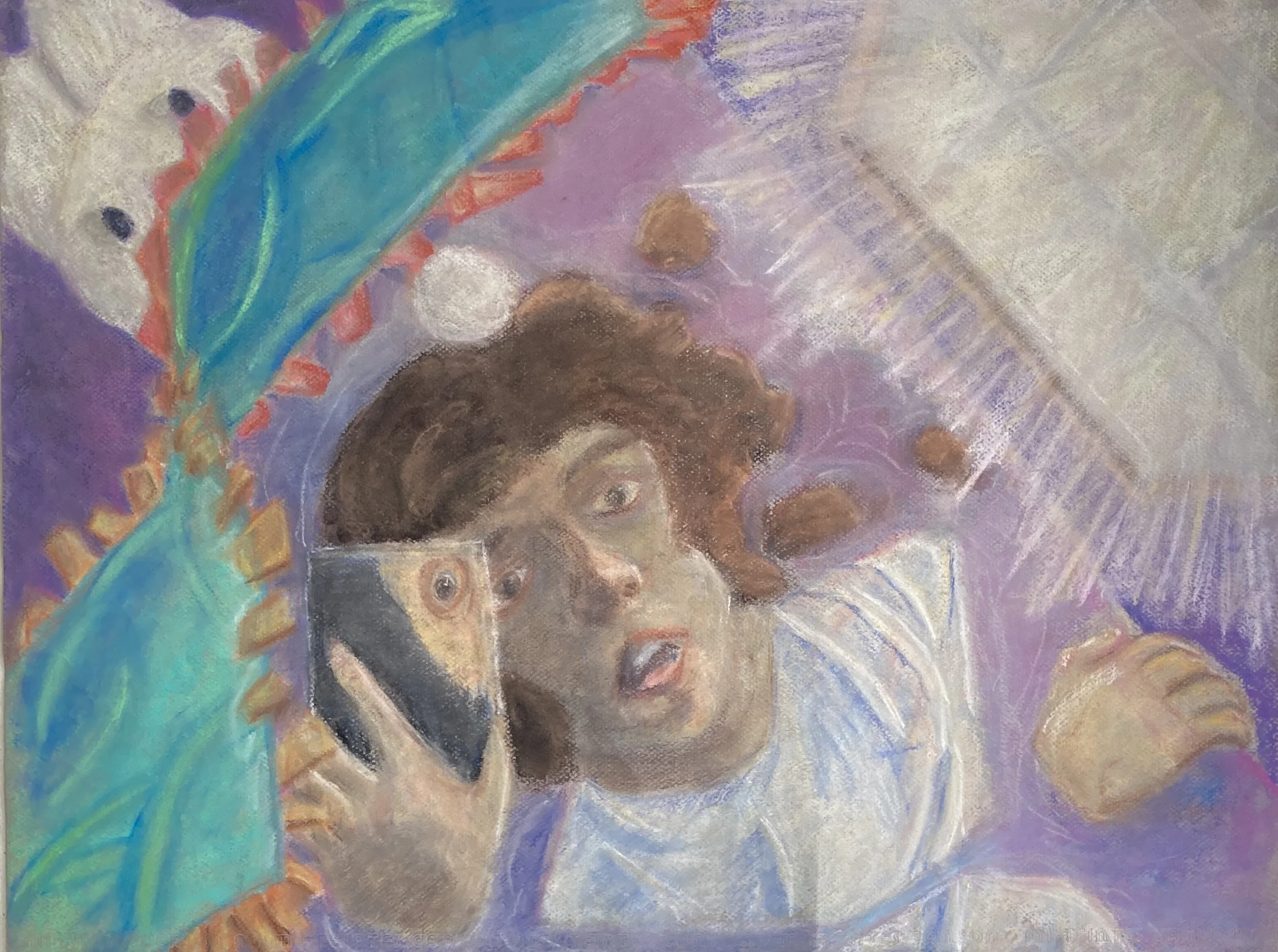Comfy Prison, 2024 (Chalk pastels on charcoal paper, 18 x 24 inches)